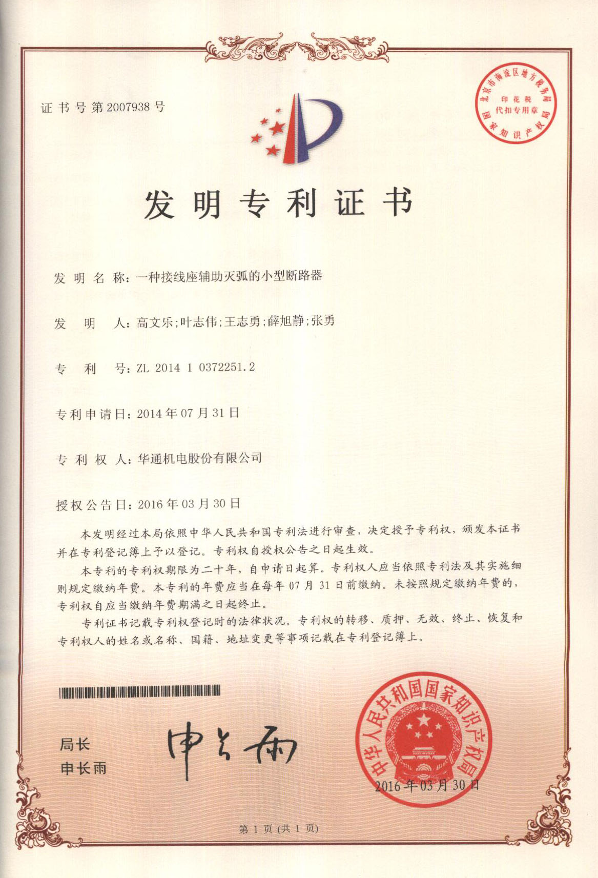 發明專利:一種接線座輔助滅弧的小型斷路器
