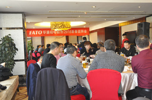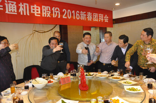 羊獻銀毫書捷報,猴揮金捧迎新春。2月15日,華通2016新春團拜會在新聚豐園大酒店隆重舉行,來自全國各地的100多位營銷精英歡聚一堂,共謀新年構想,共描未來藍圖。公司領導李成文、張龍松、黃賢福、李成倫、高賽春、趙曉斌、李茂豐、金世明、高文樂、吳俊利等出席。