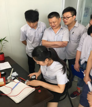 本次活動為期一天,共10多名檢驗員參加活動,內容涉及鍍層測量、硬度測量、彈簧壓力測試、外殼阻燃試驗、斷路器特性測試、觸頭銀點含量測試、斷路器等成品延時特性、觸頭壓力及超程測試、銅排導電率測量、耐壓機等設備運行檢查測試等共計10項,認真做到人人動手檢測,相互學習交流,努力提升檢測水平。