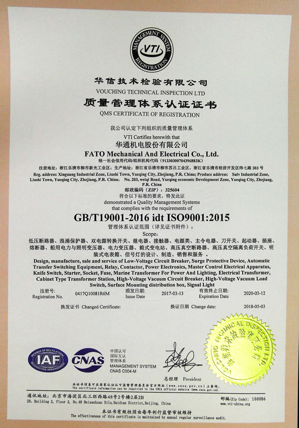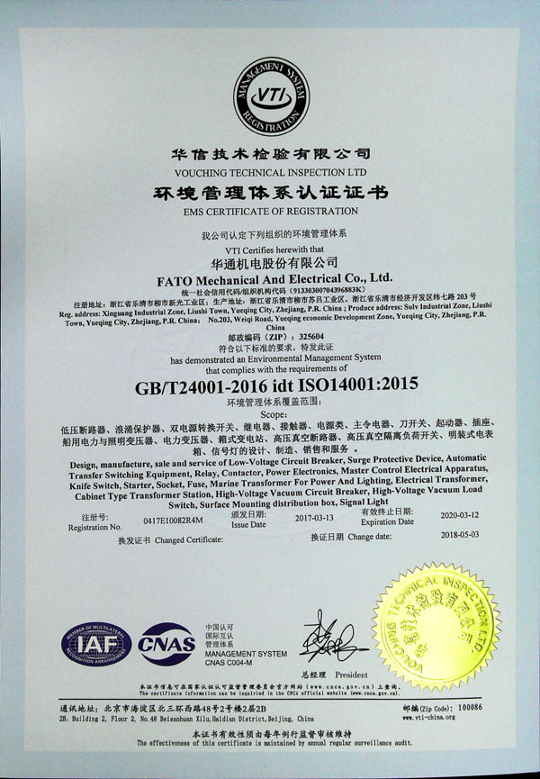 近期,華通機電股份收到華信技術檢測有限公司頒發的質量、環境管理體系新版證書及OHS監督合格通知,標志著公司質量、環境管理體系新版的貫標是到位的, QMS/EMS/OHSMS有實現目標自我完善的能力,其“三合一”管理體系的運行是有效的、適宜的。