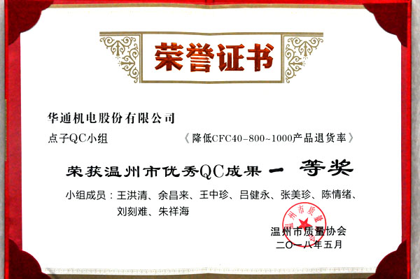要保證產品質量首先要增強全員的質量意識。品質不是一個人,一個車間,一個部門的事,而是一項從領導到基層、全員參與的綜合性系統工作。華通機電股份在管理工作中,嚴格運行質量管理體系,豐富群眾性質量管理活動,讓全體員工積極參與,不斷提升全員的質量知識水平及質量意識。并在生產過程中實現精益生產,實現產品質量零缺陷,堅持不制造不良品,不流出不良品,不接受不良品的“三不原則”。 上半年,產品質量穩定性和可靠性得到鞏固和提升,大大提高了客戶滿意度。另外,群眾性質量管理及改進活動豐富多彩,其QC成果蟬聯溫州市一等獎,并榮獲2018年溫州市優秀質量管理小組活動先進單位。