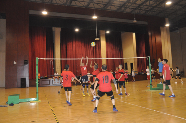 為了解公司氣排球隊近期訓練情況,11月31日晚,特地前往正在樂清教師發展中心附屬初級中學體育館訓練現場感受緊張的備戰氣氛。進入訓練館,場面熱鬧非凡,哨聲、叫好聲、擊球聲等聲聲入耳,原來相關兄弟單位及機關單位的氣排球隊都在同場訓練、熱身,有的圍著圈進行墊球練習,還有的參賽隊直接進行對抗熱身,找找比賽感覺。只見我們的男女隊員訓練非常投入,個個精神抖擻,英姿颯爽。在與其他代表隊進行對抗熱身時,我們的男、女隊都體現出了一定的競技水平,尤其是我們的男隊,狀態正好,當看到他們大力發球直接得分、大力扣殺瀟灑得分、網前攔網漂亮得分時,在場邊情不自禁跟著叫好,心里也無比激動,似乎感覺就處于決賽現場,每得一分好像離冠軍獎杯就近了一步,不由得想入非非,有時僅然忘記按下快門拍下那些精彩的瞬間。
