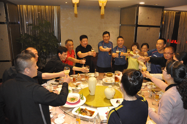 晚上,在新聚豐園大酒店舉行了慶祝晚宴,特意犒勞奪冠的功臣們,公司總裁兼黨委書記張龍松參加晚宴,并與隊員們一一碰杯慶賀,同時,并對他(她)們的拼搏精神表示贊賞,對他(她)們為公司勇奪榮譽表達謝意。(徐剛)