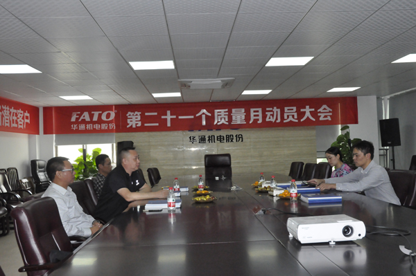 座談中,陳永敏副總裁向客人介紹了公司近年來的發展狀況,他說,華通機電股份積極應對疲軟的市場環境,充分利用互聯網+,依據“中國制造2025”等,不斷創新管理。在品質方面,重視全員培訓教育,提升全員質量意識,并強化質量管理,嚴格執行質量管理體系;在技術研發方面,持續加大投入進行產品研發和技術改進、工藝改進,尋求新的經濟增長點,如CF3系列新品等,正源源不斷推向市場,為公司的發展后勁起到很好的后勁支撐。