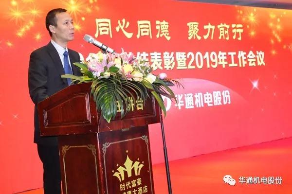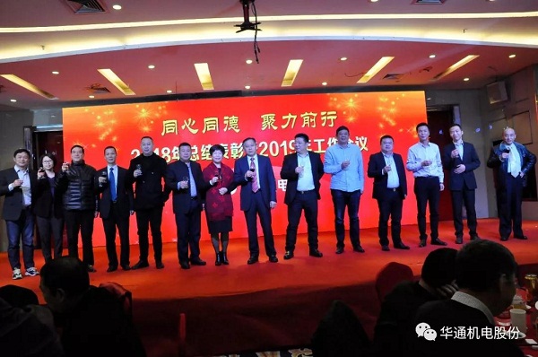 1月16日,華通機電股份2018年總結表彰暨2019年工作會議在時代富豪·夏威夷大酒店時代廳隆重召開。公司全體員工(溫州區域)、優秀成員企業、供應商代表等共600余人參加會議。公司領導李成文、張龍松、黃賢福、李成倫、高賽春、陳永敏、李茂豐、高賽琴、高文樂、吳俊利、陳前進、俞成義等出席會議。會議由趙曉斌主持。