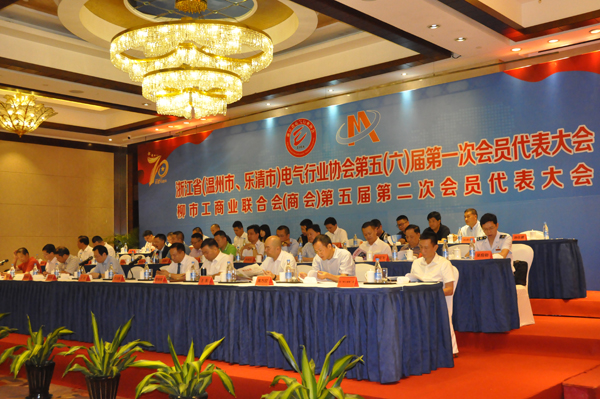 9月23日下午,浙江?。刂菔?、樂清市)電氣行業協會第五(六)屆第一次會員代表大會暨柳市工商業聯合會(商會)第五屆第二次會員代表大會在柳市新聚豐園大酒店隆重召開。省、市三級電氣行業協會副會長、理事、會員及嘉賓、新聞媒體等共400多人參加大會。浙江省中小企業服務中心主任劉兵、溫州市副市長汪馳、樂清市委常委、柳市鎮黨委書記董慶標、華通機電股份總裁兼黨委書記張龍松等出席。