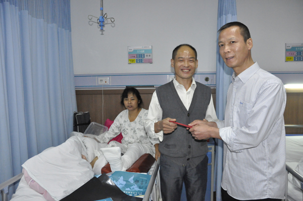 趙曉斌仔細尋問了受傷及治療情況,并對王華梅說:“代表公司感謝你們夫妻倆在工作崗位上的辛勤付出和對公司所作的貢獻,你們是華通大家庭的一員,希望你安心治病,早日康復痊愈后回到公司上班。并且有什么困難及時反映,公司定會幫助你排憂解難。”(徐剛)