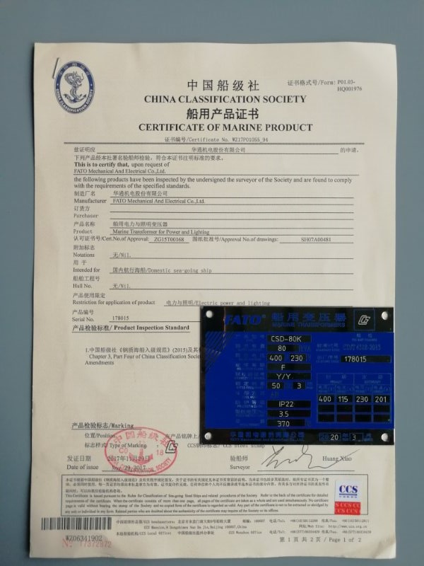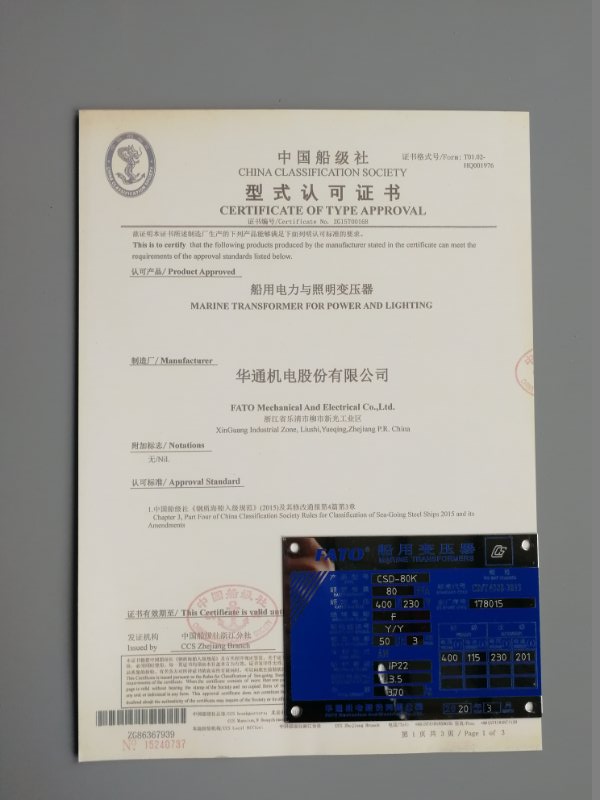 華通機電股份始終秉承“專業制造,專心服務”的理念,自2007年獲得CCS船級社認證以來,自主研發、生產制造CSD系列船用變壓器至今已有13年歷程,期間經歷了3次換證,產品的技術支持及控制要求按照相關新標準得到完善,產品工藝質量得到提升。并不斷加大投入,依據前沿資訊,依托市場需求,重視船用變壓器的新品研發,切實做到產品質量過硬,工藝技術成熟,性能安全可靠,為客戶打造并提供船用變壓器一站式解決方案。