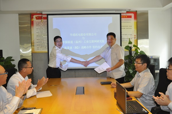 近日,華通機電股份與中國聯通(溫州)工業互聯網研究院攜手戰略合作新基建,簽約儀式在公司二樓會議室隆重舉行。中國聯通(溫州)工業互聯網研究院院長谷澄鈞、工程師夏茂林親臨簽約。公司領導張龍松、李茂豐、吳俊利、高文樂等出席簽約儀式。