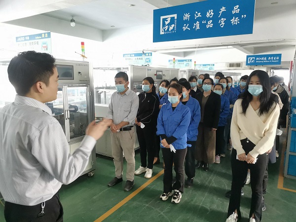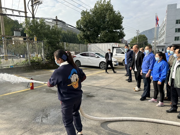 然后,還進行了疏散演習。模擬三樓車間出現火情,響起消防警報,所有參演人員立即在疏導員的引導下,嚴格按照預案疏散要求及技巧,從該車間的安全通道進行緊急疏散,并迅速撤離到廠區安全區域。